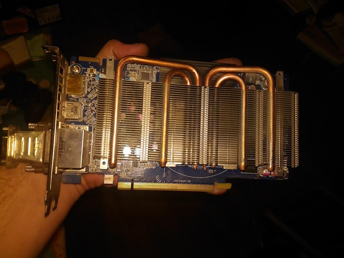 Всем привет, решил купить недавно себе видеокарту б/у у проверенного человека модель видеокарты SAPHIRE RADEON HD 7870 2 GB, так случилось что у него не оказалось охлаждения для видеокарты только видеокарта с радиатором, в инете нашёл интересную информацию что типа можно устанавливать обычные кулера на 80 мм Gembird 3pin FANCASE (RPM MAX 2200), ну я и купил поставил, хамутами притянул не сильно два отверстия притянул к медным трубками а других два к радиаторной решётке, ещё заодно решил термопасту поменять, поменял АЛСИЛ-3, термопасте 3 года хранится в шприце.Вообщем в простое градусов 31, запускаешь furmark тестишь и температура лезит 100 C. Но вот интересная загвоздка у меня на втором компьютере тоже видеокарта грелась до 72 С RADEON hd 4870 , я решил что дело в термопасте поменял стало 86, может дело в термопасте по констистенции термопаста не сухая, так скажем как герметик один в один. Я думаю, что дело в термопасте, может и не прав, просто не охота тратить деньги в пустую. Прошу помочь знающих людей. Скинул картинку видеокарты без кулеров.