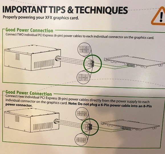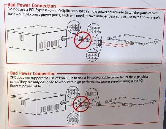 Здравствуйте! Очень нужна помощь в подключении питания к видеокарте amd xfx radeon r9 280x Блок питания Thermaltake tr2 S 600w Выходы питания на видеокарте: на 8 и на 6 pin Кабель от блока питания: PCI-E 6+2 pin (x2) С видеокартой идут два переходника 6pins to 8 pins и 4pins to 6 pins и небольшая инструкция на английском