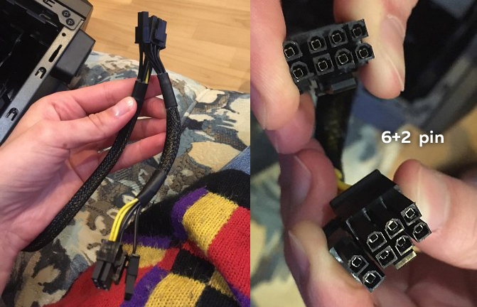 Различие между входом на карте на 8 пин и разъёмом на кабеле 6+2pin "и ещё хотел бы уточнить, этот кабель 6+2 pin (2x) считается как два отдельных кабеля, просто в объединённом виде сделан?"