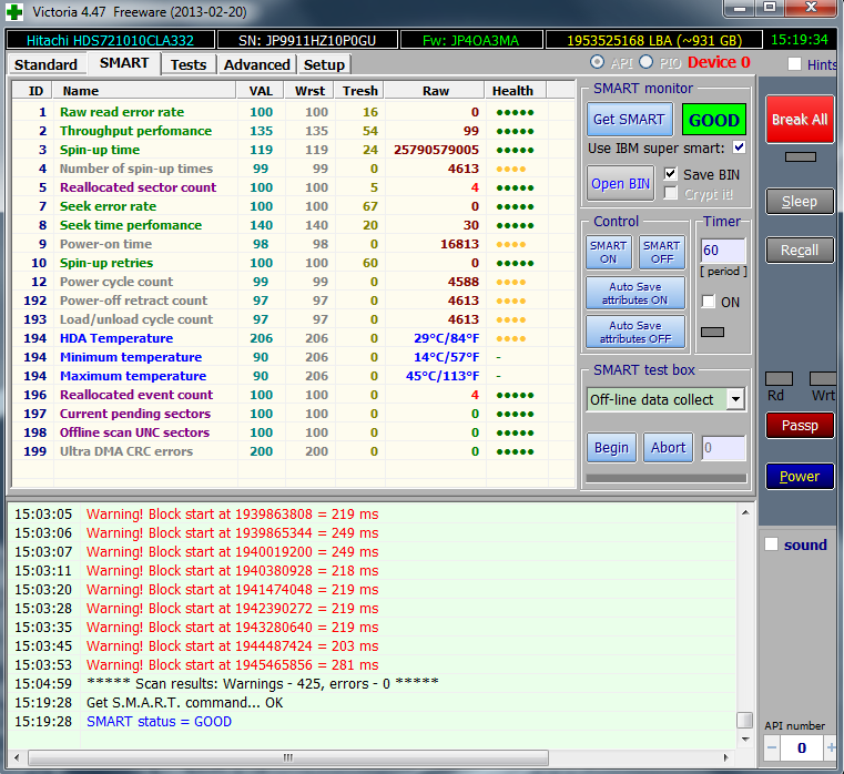 Хм прогнал щас этой прогой свой жд на 1тб вестерн дигитал, был уверен, что ему на покой тоже пора, так как семь лет уже ему, а нет по завершению выдало no errors, no warnings, удивлён, как такое может быть?