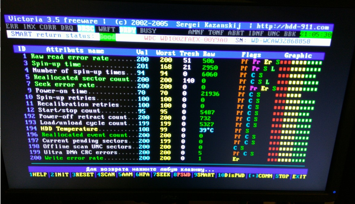 Раньше у меня были проблемы с секторами, но это был програмный сбой (около 5,6 секторов). Я эти сектора просто обнулял викторией и все. Диск работает с 11 года. Не насилуется никогда. Среднеумеренный режим работы. После постановки диска обратно в мой пк он определился и работает отлично но... Как только я ввожу что-то клавиатуру комп зависает. В браузере. И через 2- минут выскочил синий экран с грузной рожицей и перезагрузился. Защита ресурсов Виндоус не обнаружила поврежденных системных файлов.