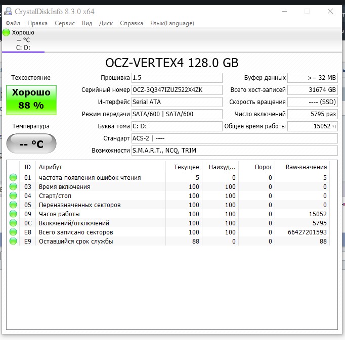 Вот мой смарт. В данный момент используется ноутбук. Да вспомнил в 2005 был у меня сигейт на 40 или 80гб. Вот он вскорости издох и с тех пор я их презираю.