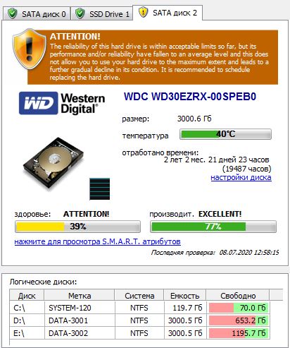 А вот нестабильные сектора - это точно плохо (параметр 197). Количество еще не критичное, но что они появились, это звоночек, есть сектора, которые не сразу читаются.