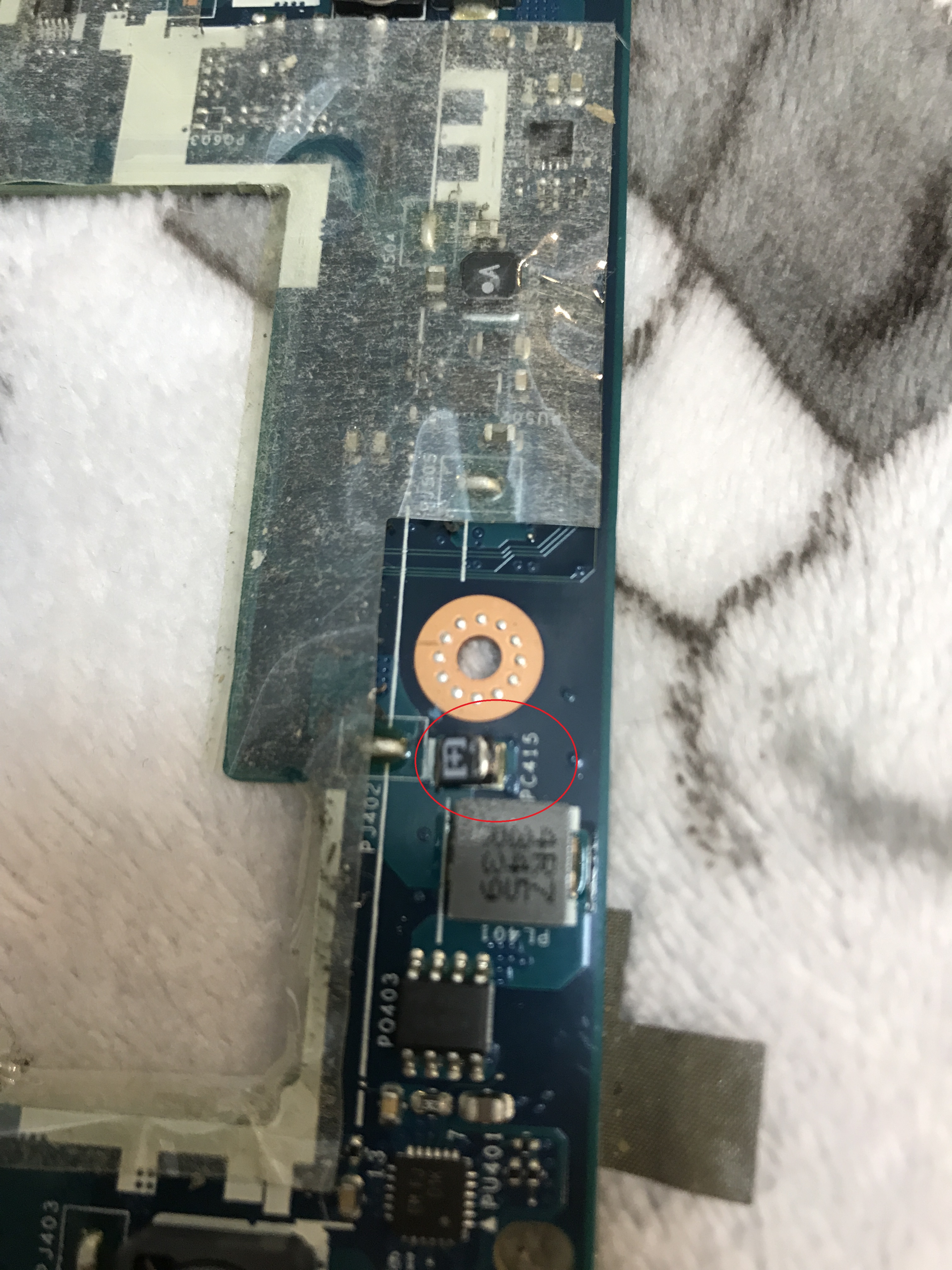 Добрый день. Сегодня когда высверливал винт на корпусе, случайно прошелся сверлом по какому-то компоненту на мат. плате ноутбука lenovo G580. Как называется этот компонент, где достать новый и можно ли на него вообще забить? P.S. Ноутбук заводится, тесты напряжения выдают нормальные значения