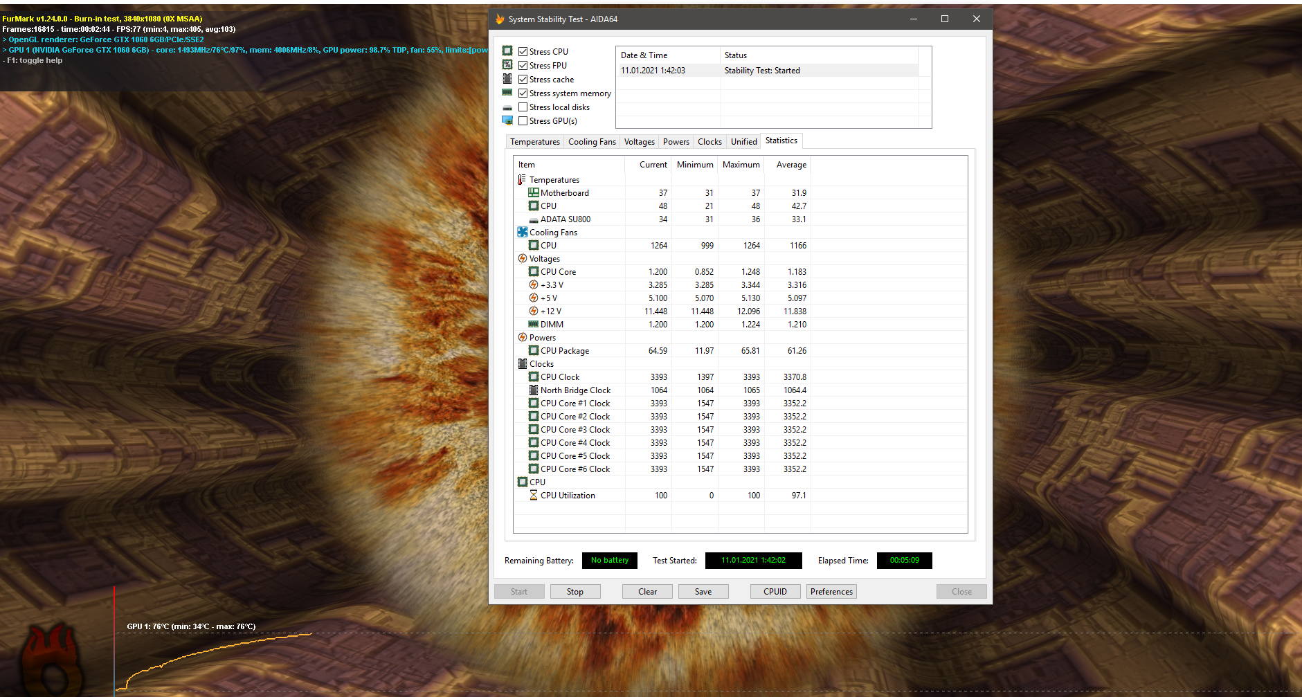 Добавлено спустя 1 час 49 минут 28 секунд: Сейчас нагрузил систему по максимуму, 5 минут отработала нормально, дальше полет тоже нормальный, по логике вещей, если бы БП не держал, то уже улетел бы в синий экран с 41 ошибкой! Но этого не происходит. Так же сделал тест Оперативной памяти. Показатели вроде бы нормальные.