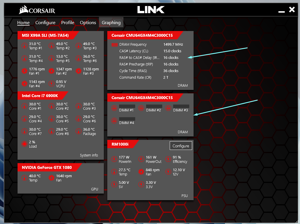 В программах Corsair Link 4 и CORSAIR iCUE память определяется