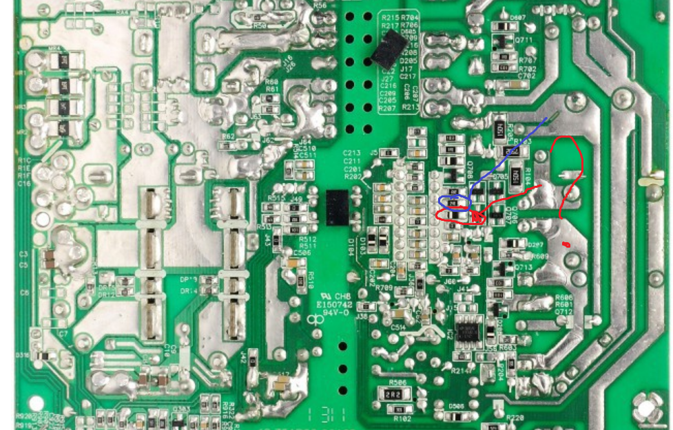 Добавлено спустя 13 минут 19 секунд: С обратной стороны платы подозрительный smd диод (красным)- звенит от 5 ноги pfs out шимки cm6800tx