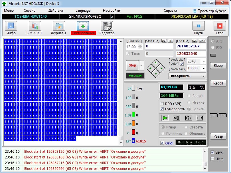 Добавлено спустя 2 минуты 55 секунд: Первые ошибки вылезли при попытке стереть все данные с жесткого диска - функция "программы Виктория" Скрины ниже прилагаю