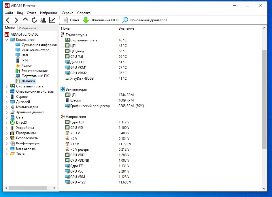 Мониторинг без нагрузки это не о чём. Скачайте OCCT и запустите проверку: CPU, GPU. а потом и БП и смотрите какие выходные напряжения будут в ходе проверки.