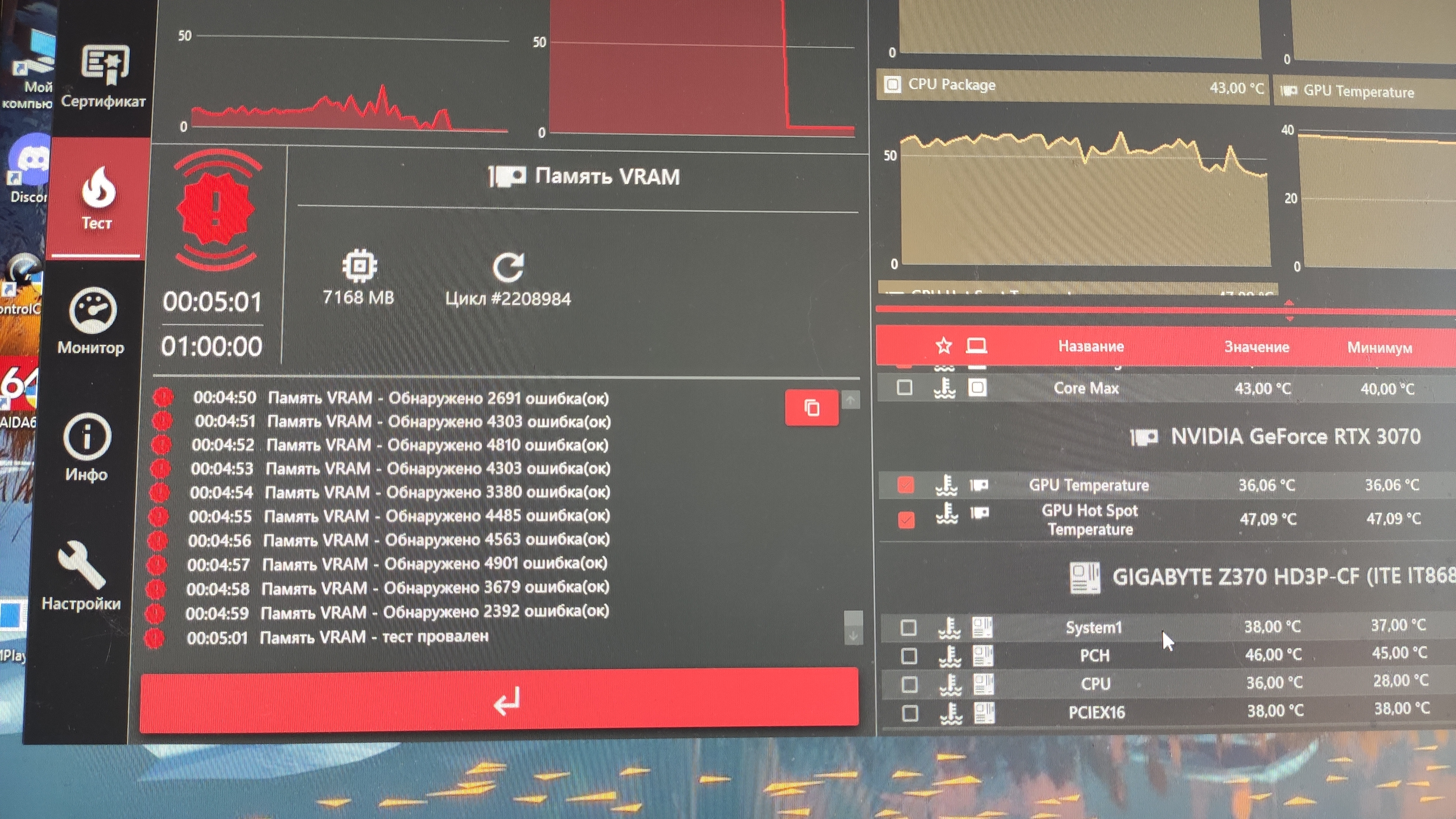 Проверил VRAM при помощи OCCT и MSI Kombustor - вышли ошибки по памяти VRAM.