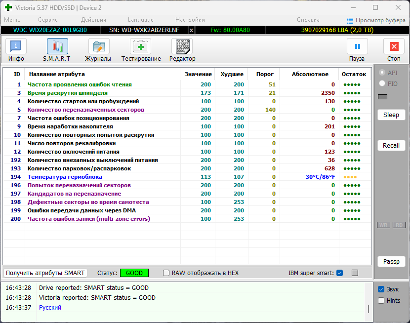 XenneX логично, что при проблемах с процем и/или оперативкой не было-бы четкого воспроизведения проблемы только при подключенном конкретном ЖД? Был у меня когда-то 2600х, в т.ч. недолго с 3070 в паре. Да и винтов и SSD в конфиге поболее будет. Карту проц не раскрывает от слова совсем, да и 3060 не раскроет (если речь о 1080р), но никаких подобных фризов там не наблюдалось. А вот когда один из старых жестких дисков начал умирать - были непонятные рандомные глюки и зависания, именно когда он был подключен. Причем это было уже на актуальном профильном конфиге основного ПК. Тут не совсем то, ибо SMART хороший, но схожесть некоторая имеется.