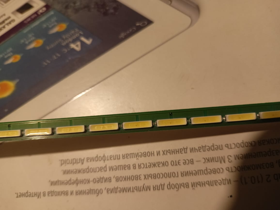 Привет. проверял плату с подсветкой, к матрице не подключал.. спасибо за совет, подключил к матрице и заработало.. Теперь я 100% уверен что дело в линейке лед.. как бы ее теперь купить.. на озоне нет, на али только один продавец кто ее продает, но хз новая ли она. Светодиоды бы перепаял все, но не могу найти их в продаже. на озоне нашел похожие, а он их по 200р за шт продает... бу может взять? Марица LM290WW2-SSC1 , линейка лед называется 290ww2 rev 0.4