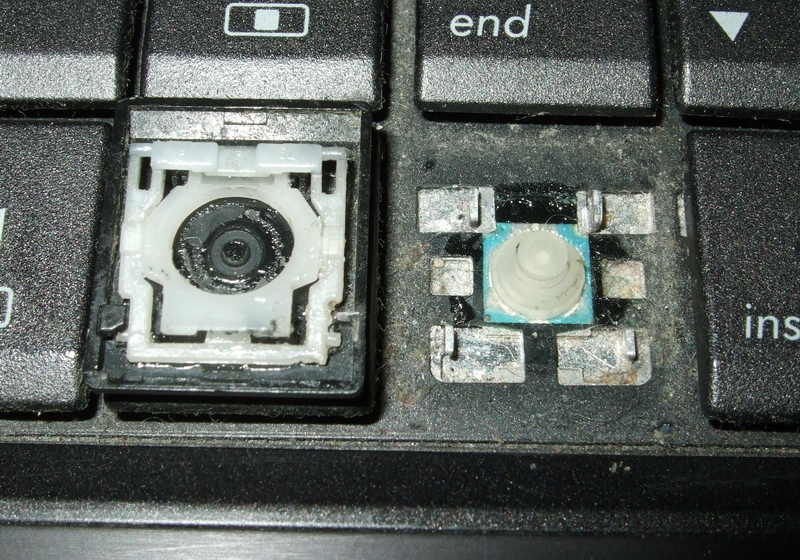 Доброго вечера! Клавиатура очень хорошего качества ! Можно целиком новую заказать из Китая за 8 баксов, но там, возможно, будет не совсем ТО в процессе использования в сравнении с текущей) Выдрана навигационная клавиша. Я бы выдрал схожую по размеру с цифрового блока клавиатуры, да боюсь и ей "свернуть шею" Фиг его знает, как они тут правильно выдираются) Может кто в курсе.. реально заменить только кнопку? У нас их даже продают отдельно) Со слов предыдущего хозяина бука кнопка сломана. Пробовал отдельно содрать с кнопки "каретку" и установить её в паз клавиатуры - ничего не вышло) Каретка явно вживлена в кнопку. Попытки придавить и зафиксировать кнопку тоже результата не дали )
