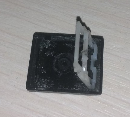 Добавлено спустя 7 часов 13 минут 29 секунд: На самой кнопке два пластмассовых зацепа. Правый на фото сверху я сломал буквально вчера вечером в ходе эксперимента)) Если освободить каретку из оставшегося в живых, то она становится фактически вертикально ..на самом деле жуткое зрелище