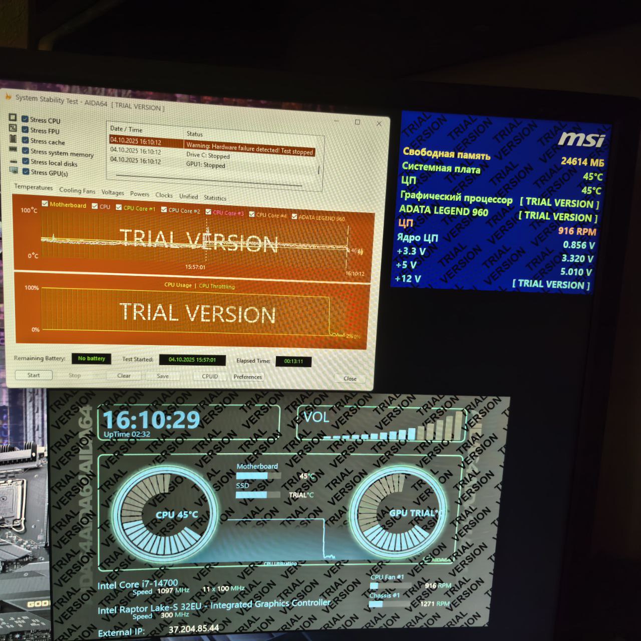 Прошу помощи с системником, который только собрали и привезли из Ситилинка с указанными характеристиками. Вылетает при игре в Dying Light The Beast в среднем за 10 минут игры, при этом системник значительно греется, становится как печка. Прогнал через AIDA 64 выдаёт ошибку при стресс тесте и постоянно показывает значение кулера в оранжевой зоне. А вот в Киберпанк за час игры вылетов не было. Изначально кулер хотел взять мощнее, но техник и Ситилинка посоветовал этот сказал, что для это процессора достаточно и такой, так как он мало греется. Ещё есть 6 дней сдать системник.