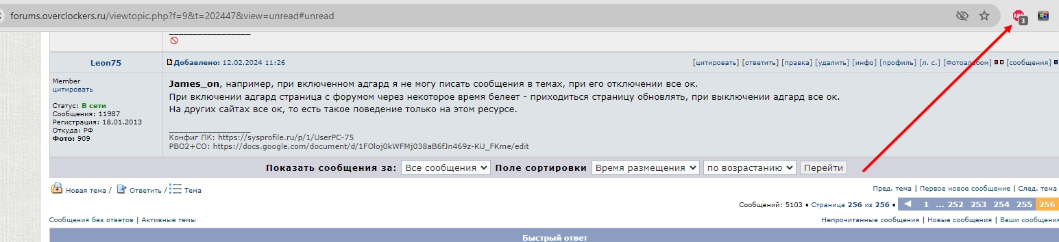 James_on, например, при включенном адгард я не могу писать сообщения в темах, при его отключении все ок. При включении адгард страница с форумом через некоторое время белеет - приходиться страницу обновлять, при выключении адгард все ок. На других сайтах все ок, то есть такое поведение только на этом ресурсе. Пару дней, что страница белела, а уже сегодня и посты писать не могу с включенным адгард.
