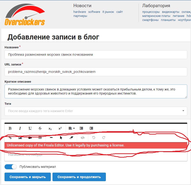 Пишу в блоге, выявил небольшую проблему. Хочу добавить для записи Тег "доработка" - получается "дора" Суть в том, что если писать тег на русском и использовать букву "б" (возможно еще какие то) - написание тега прерывается.