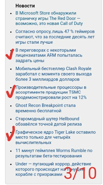 Добавлено спустя 3 минуты 16 секунд: Вот. Галкой отмечены хв новости, то есть соответствующие названию ресурса. 3/10. Отлично!