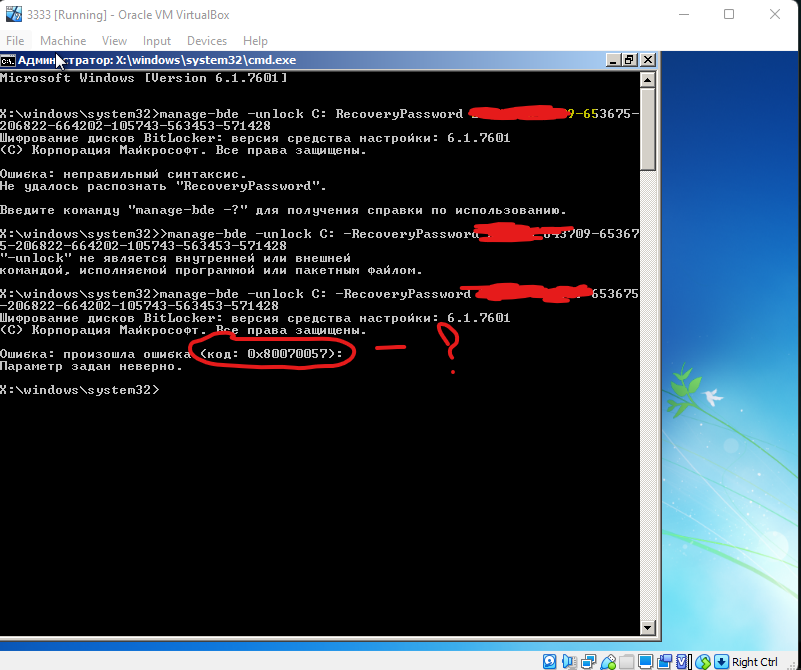 Нашел таки код восстановления Bitlocker Теперь я пытаюсь расшифровать раздел через восставноление системы - командная строка, так как загрузчик дальше черного экрана не пускает делаю по этому мануалу https://www.top-password.com/blog/decry ... mand-line/ manage-bde -unlock D: -RecoveryPassword YOUR-BITLOCKER-RECOVERY-KEY-HERE Но система выдает ошибку В чем дело?