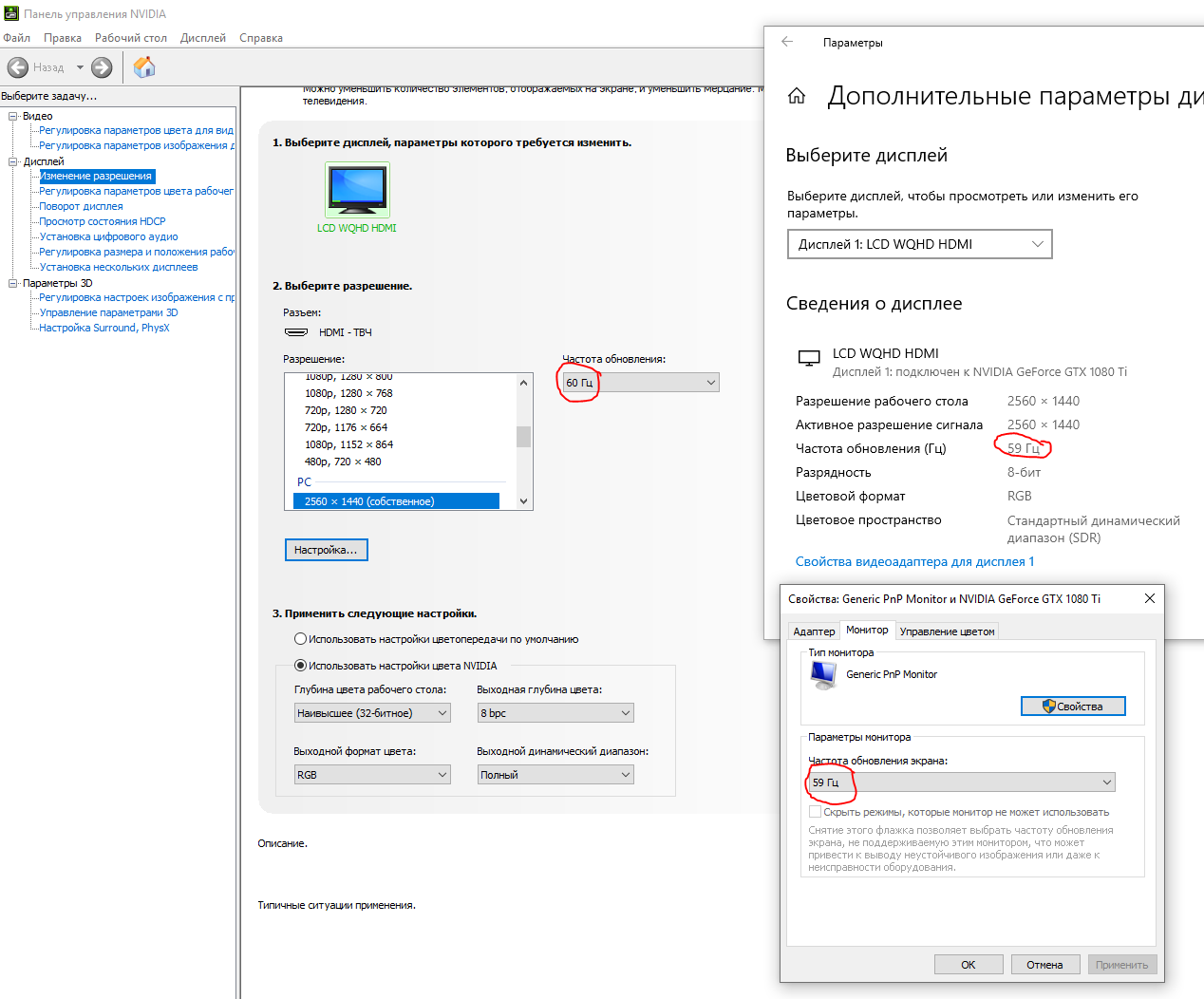кто -нибудь может объяснить почему у меня на моник выставляется 59герц?если сменить на 60 и применить.а потом опять открыть будет все равно 59?причем в панели нвидиа стоит 60 Автор проверь у себя.Неправильно выставленные локи фпс ломают фрейм тайм-сам видел у себя в тонках.