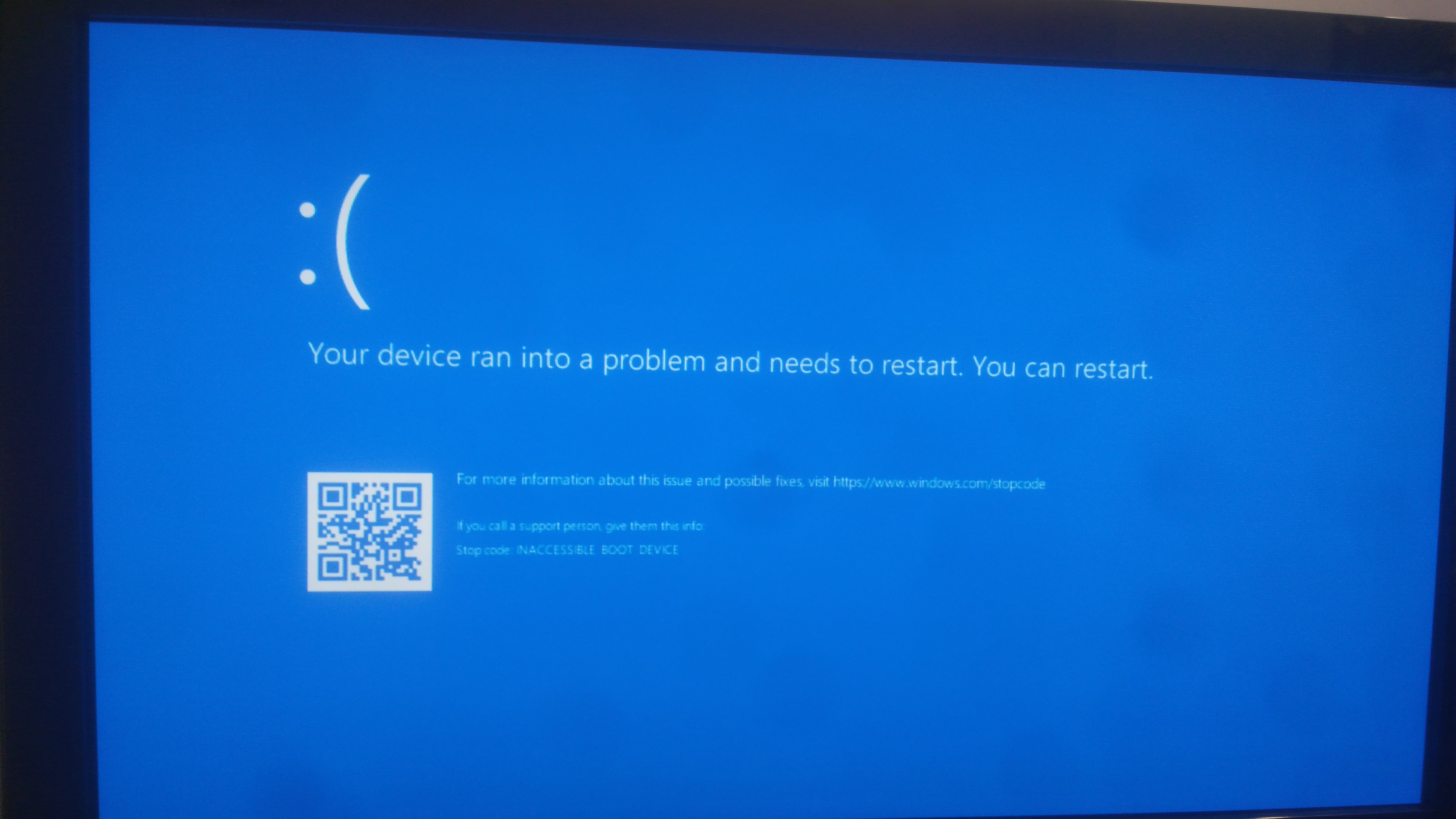 Вы слишком много сделали не по делу. INACCESSIBLE_BOOT_DEVICE - это чаще всего проблема не с загрузчиком и не с его настройкой, а с тем, что банально ядро винды не может найти драйвер для доступа к диску. Вам нужно с любой флэшки, которая умеет открывать реестр убитой винды, найти ветку HKEY_LOCAL_MACHINE\SYSTEM\ControlSet001\ и там в ветках типа msahci, iastorv и подобных поменять значение Start с 3 на 0. То же самое для аналогичной ветки ControlSet002. Вроде бы по загрузчику вы особо ничего не наломали, но лезть в него категорически не стоило. P.S. И не берите никогда флэшки на восстановление, они почти никогда не восстанавливаются. Пусть мучаются ребята с норм оборудованием.