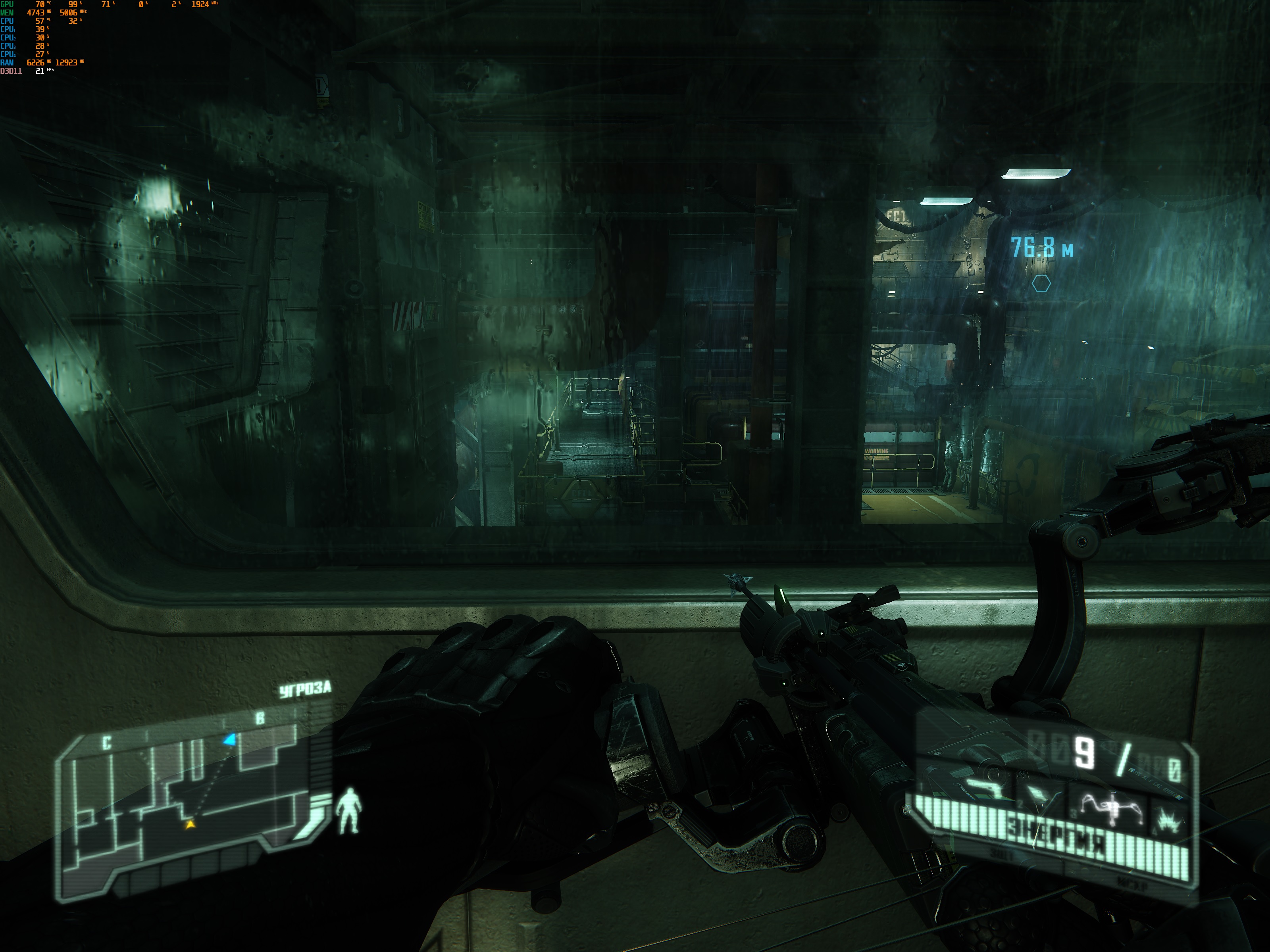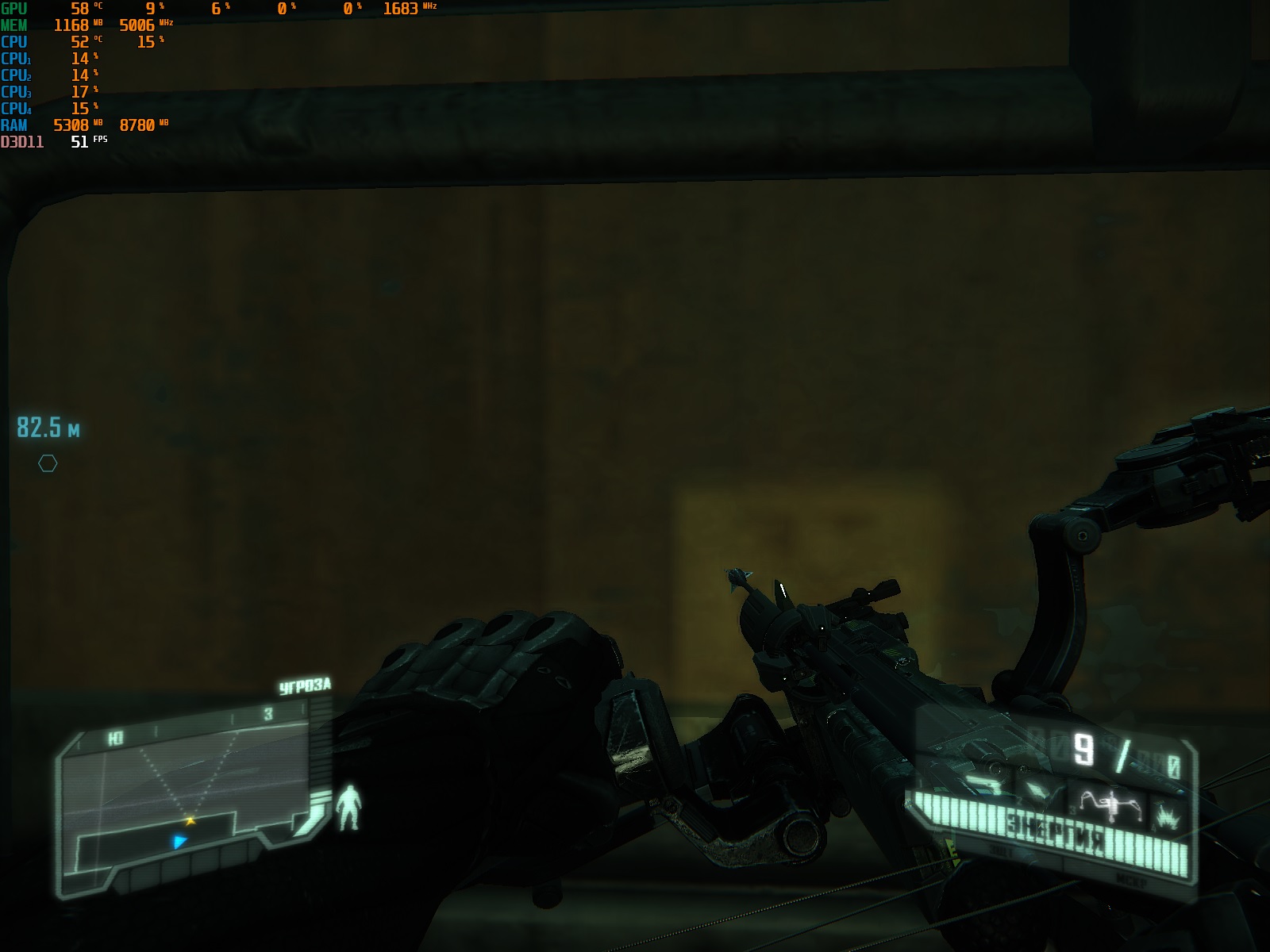 Комментарий к файлу: Настройки графики с которыми буду проходить игру теперь больше 53 кадров выдаёт, а если посмотреть на стену, то поднимается до 150 crysis after hi.jpg [ 414.39 КБ | Просмотров: 21312 ]
