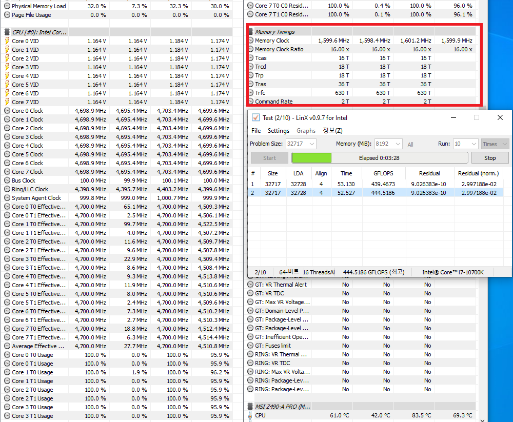 Что там говорили про питание процессора - бредятина полная. Про материнки - просто навороченные материнки выставляют более оптимальные настройки при Auto значениях таймингов. Видно, что какая-никакая настройка памяти (которая не блещет своим потенциалом) даёт ощутимый прирост производительности в LinX, ну и в других бенчах где используется ОЗУ. Считаю, что на мой вопрос удалось коллективно найти ответ, я на практике проверил и убедился в том, что дело действительно было в памяти. P.S. Да, научился спойлерами пользоваться