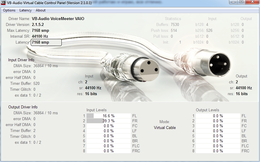 Также монитор виртуальных кабелей показывает размер буфера входного сигнала. Видно, что виндой используются буферы размера 256 и иногда 128. Не нашел информации, как можно увеличить его размер.
