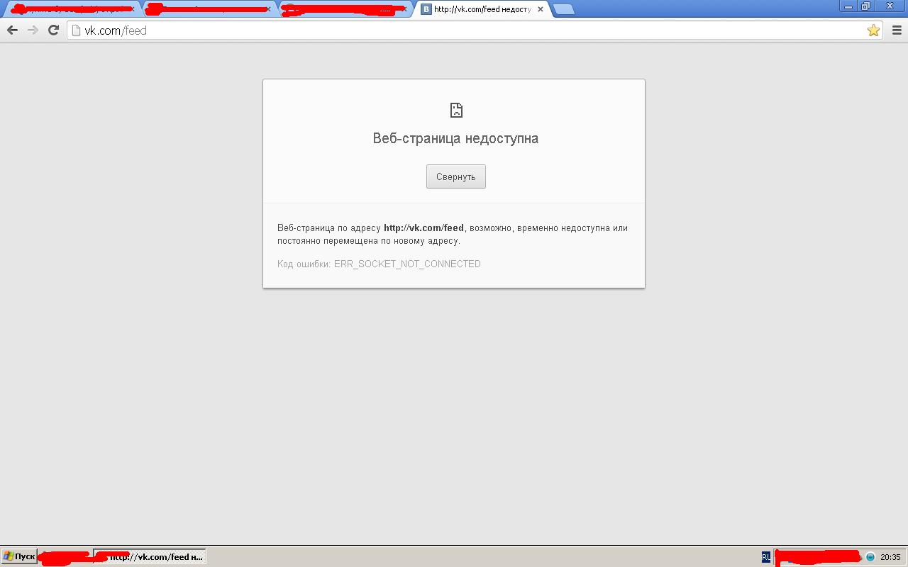 Привет всем, друзья! Много времени прошло с начала проблемы. Объясню все по порядку... Вообщем есть ноутбук старого происхождения, на нем стоит windows xp sp3, подключен в интернет либо по wi-fi, либо через 3G-модем. Примерно полгода назад, как ни в чем ни бывало, включаю ноутбук, а там ошибка, которая на скрине, и все... в этого момента понеслось... Хост чистил, удалял, что только с ним не делал, доктор вебом проверял, касперской утилитой тоже... ничего... Все существующие методы попадания на сайт vk.com под любым обманом заканчиваются такой ошибкой... Браузеры хоть заменяйся - непустит...