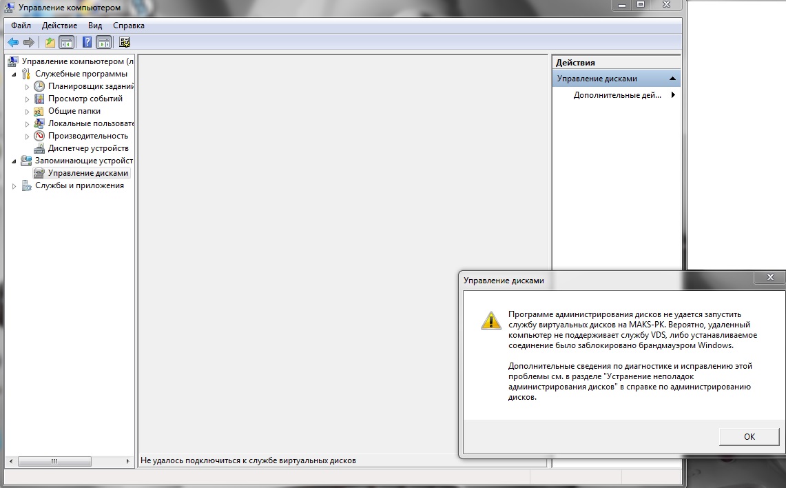 Всем привет! Дурацкая проблема. Купил второй ССД, все вставил, включил винду. Она его не видит. Управление дисками не работает. Выскакивает окошко, которое прикрепляю к сообщению. Что делать? Антивирус Avast Premier2015. Брандмауер отключил. Диск виден в програмке от кингстона и в диспетчере файлов. ХЕЛП!
