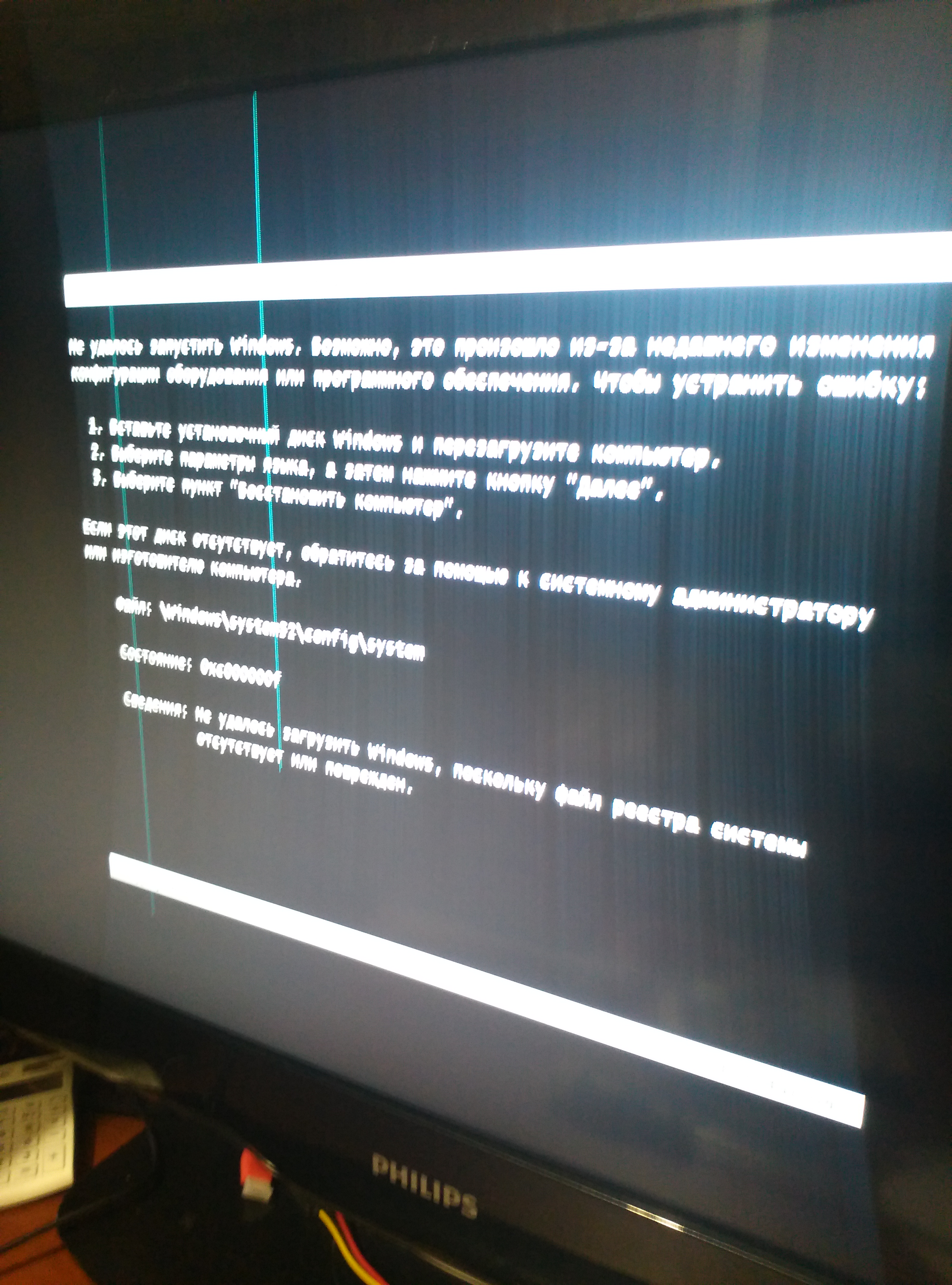 Доброго времени суток. Сломал всю голову уже... Есть 2 ССД диска, материнка на H61 чипе с i5 и 8гб ОЗУ, цель на внешнем Marvell контроллере собрать Зеркало... При попытке установить любую ОСь на Raid1 (s2008R2, 7, 8.1, 10 х64) после завершения установки и надписи (перезагрузка через 10..9..8... итд.) у всех ОСей выдаёт одну и ту же ошибку.. (под спойлером) (0xc000000f)