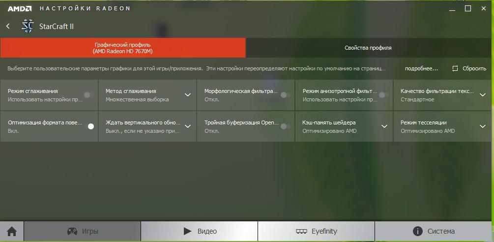 ну как бы, -1-5фпс для 2гб карты в старкрафте совсем не айс. Еще раз обращаю внимание на картинки - В настройках драйвера - профиль на игру стоит Radeon. Но сама игра пишет что использует карту Intel.