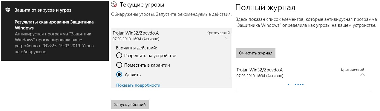 После запуска винды Защитник показывает, что всё ок. Ручная проверка тоже не находит угроз. Далее спустя какое-то время Защитник вспоминает про удалённый ещё две недели назад трейнер для игры с ложно-позитивным срабатыванием, которого на пека давно нет. При выборе любого действия: удалить, в карантин или разрешить Защитник уходит в бесконечный затуп. Вот так насилует мозг постоянными уведомлениями уже вторую неделю. Что делать? (демонстрация в приложенной пикче)