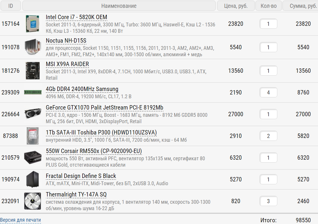 Собираю новый компьютер до 100 000. Ориентируюсь по ценам Регард и pleer.ru.