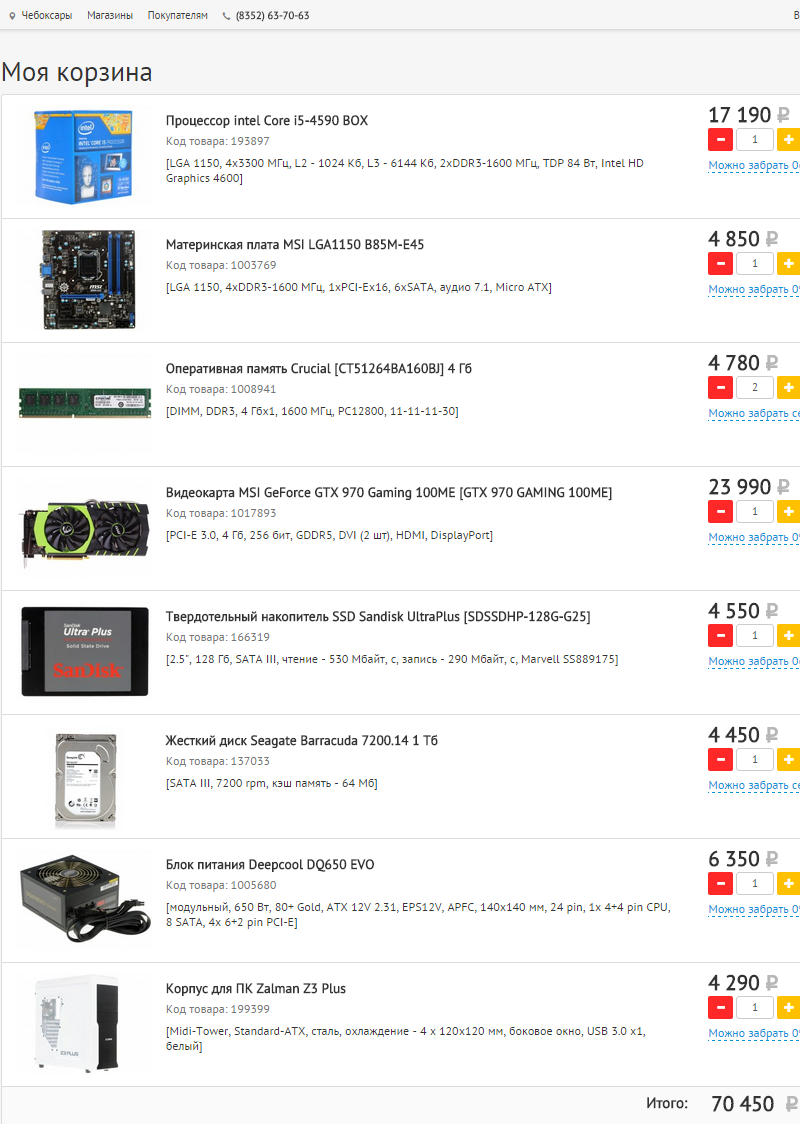 Доброго времени суток. Помогите, пожалуйста, собрать компьютер: 1) 70 тыс. руб. (макс. 75 тыс.); 2) http://cheboksary.nix.ru/http://www.dns-shop.ru/ (Чебоксары), квартон.рф; 3) Только системник; 4) В основном для игр (Fallout 4, WoW); 5-6) Разгон и апгрейд не планируются лет 4-5; 7-9) Железа нет, требований нет, набросков, к сожалению, тоже нет.